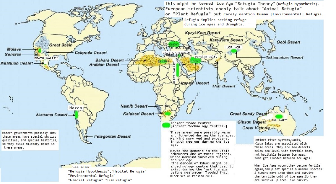 Perhaps such places were warm,lush and fertile during ice ages, being watered by melting ice and glaciers.