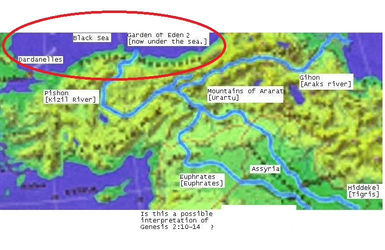 -Genesis Chapter 8 suggests an Eden near Ararat(Urartu). This is possibly the Black Sea trade centre.